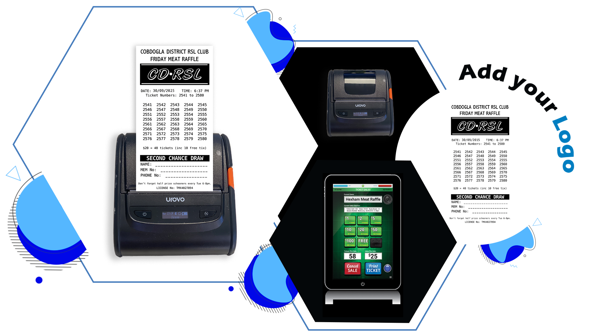 • Personalise tickets with club name, logo, raffle name, an extra line of info and raffle license number.